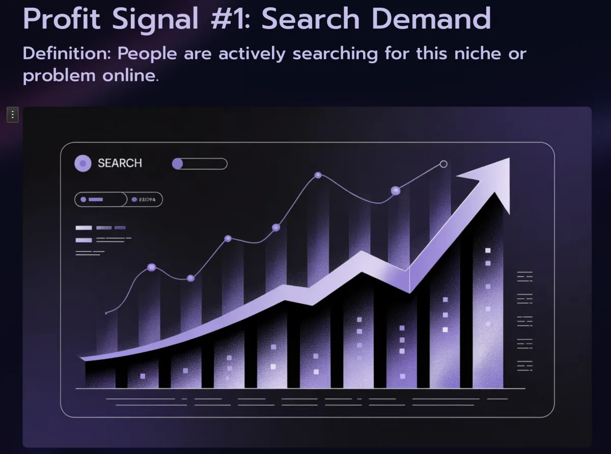 We’re going to validate that there’s a target market actively searching for real solutions tied to the specific pain points within your general Niche ideas. Because in this Space, we don’t build offers on hope — we build based on heat.